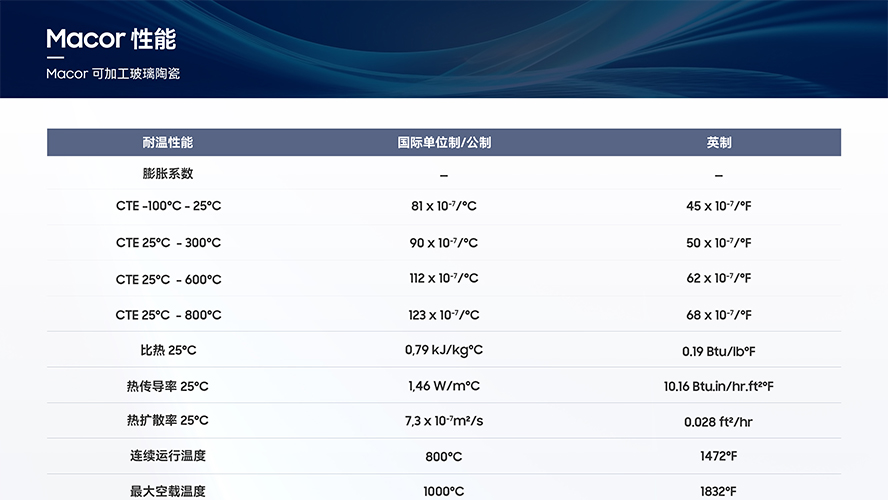 macor可加工陶瓷的性能參數(shù)
